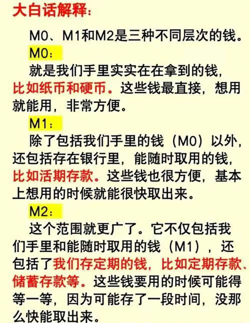指银行体系之外由居民和企业持有的纸币、硬币,以及数字人民币。M0 是流动性最强的货币形式,可直接用于支付。