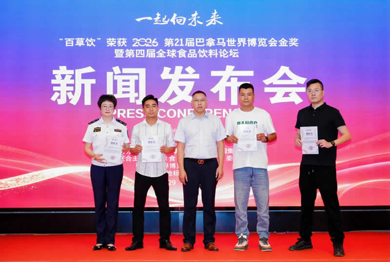 3月29日下午,一起向未来 百草饮荣获2026第21届巴拿马世界博览会金奖暨第四届全球食品饮料论坛”新闻发布会在海口举行,200余名政府代表、企业嘉宾及媒体记者齐聚,共同见证海南品牌的国际突破与行业盛会的重磅启幕。