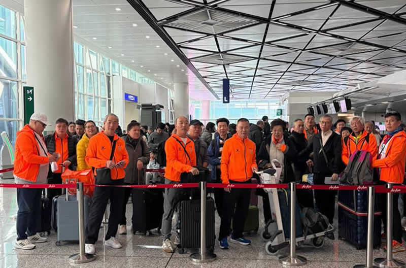 2026年1月8日,香港顺华足球队一行精神抖擞地出现在香港国际机场,准备踏上新年亚洲之行的征程,首站便是吉隆坡的足球赛事。队员们身着醒目的橙色运动服,在机场内形成了一道亮丽的风景线。