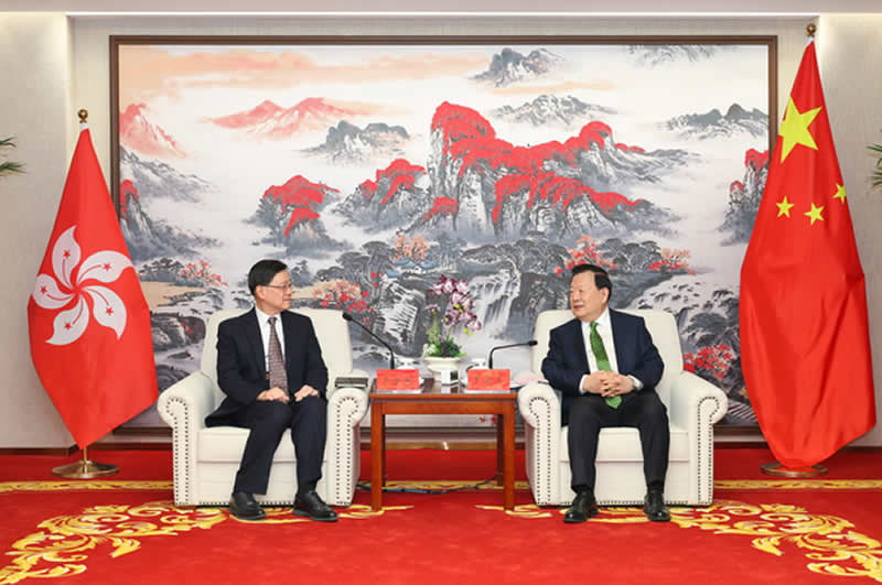 中央港澳工作办公室主任、国务院港澳事务办公室主任夏宝龙昨日上午在北京会见列席十四届全国人民代表大会第四次会议开幕会的行政长官李家超。