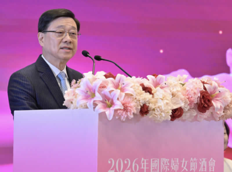 民政及青年事务局、妇女事务委员会今日举办2026年国际妇女节酒会,行政长官李家超及夫人李林丽婵担任主礼嘉宾。