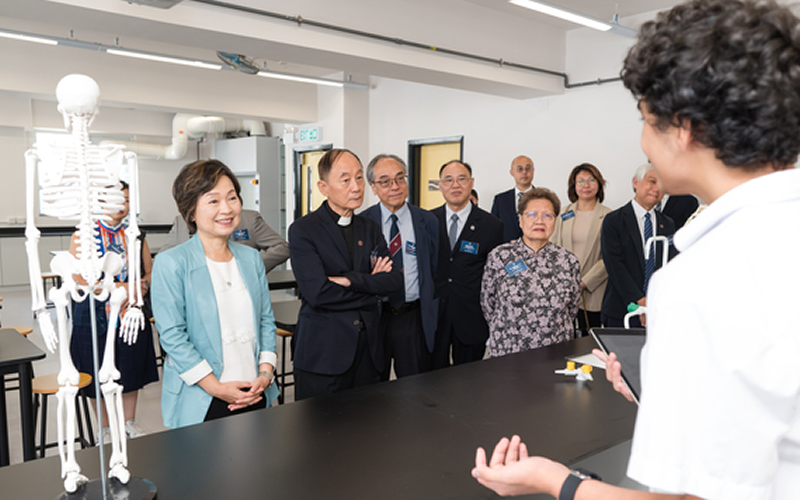蔡若莲随后参观学校的综合科学室、编程和物联网实验室,以及黑盒剧场,了解学生在科学、应用科技和演艺方面的学习体验。