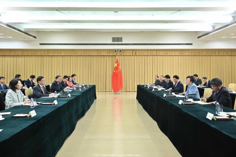 行政长官李家超在北京与人力资源和社会保障部部长王晓萍会面,就特区政府在教育科技人才一体融合发展、推动香港成为国际高端人才集聚高地等议题交换意见。
