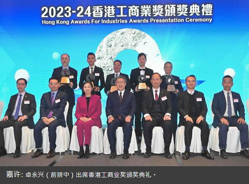 2023至24香港工商业奖颁奖典礼今日举行,表扬79间表现优秀的本地企业。行政长官李家超在颁奖典礼透过视像方式致辞,政务司副司长卓永兴担任典礼的主礼嘉宾。