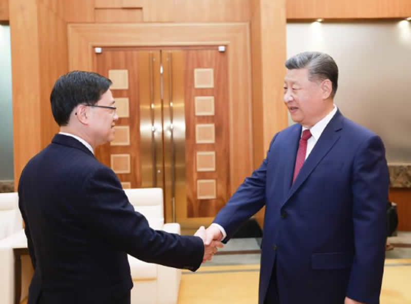 12月19日下午李家超抵达澳门,出席庆祝澳门回归祖国25周年系列活动时获得习近平主席的接见。