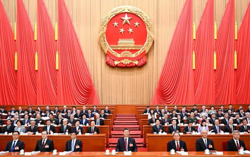 3月5日,第十四届全国人民代表大会第三次会议在北京人民大会堂开幕。党和国家领导人习近平、李强、王沪宁、蔡奇、丁薛祥、李希、韩正等出席大会。新华社记者 李学仁 摄