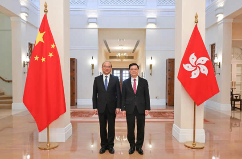 行政长官李家超今日在礼宾府与黑龙江省委书记许勤会面,就深化龙港合作交流意见。