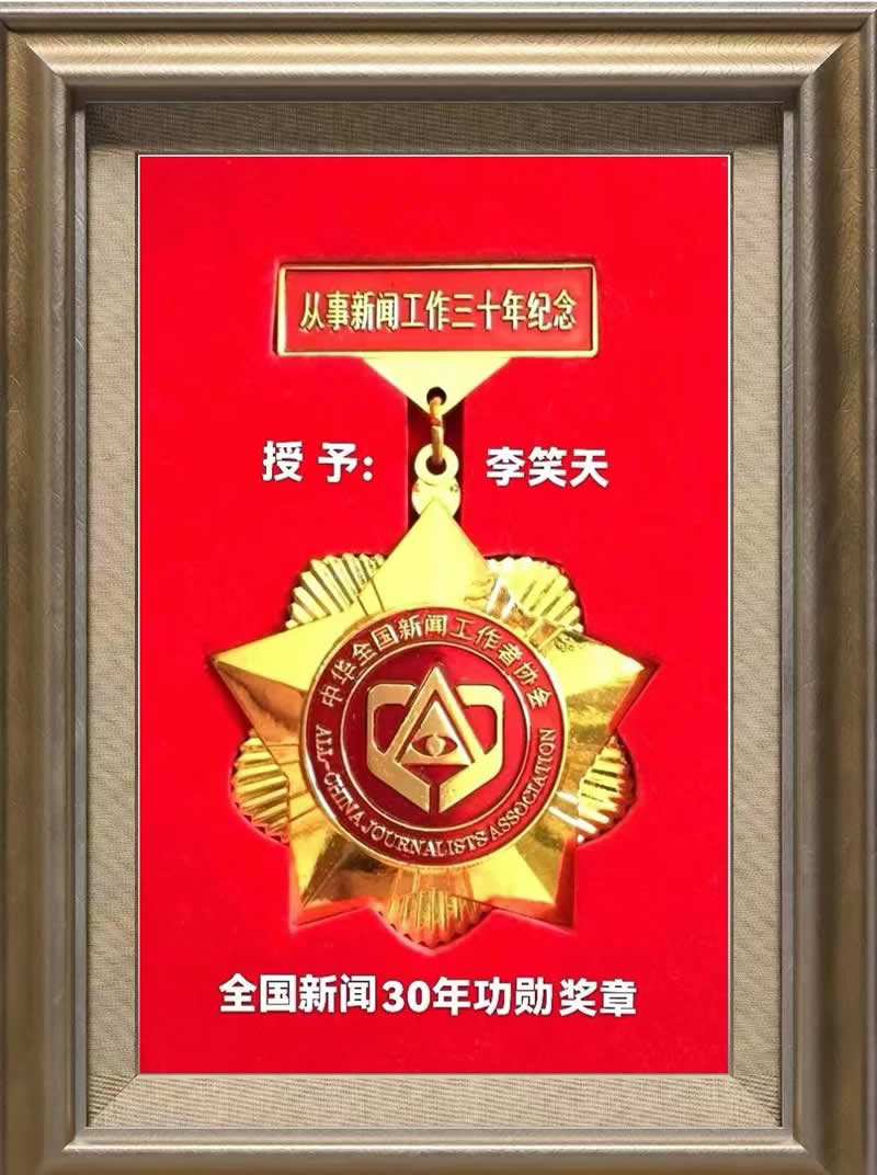 李笑天获荣全国从事新闻工作30年功勋奖章