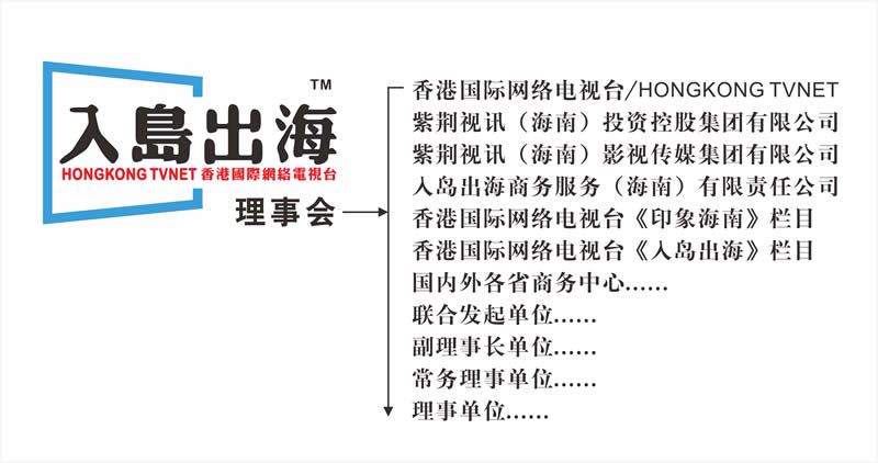 入岛出海理事会全称为“入岛出海商务服务理事会”,由香港国际网络电视台发起,是理事会的全媒体矩阵国际化基础服务平台,也是为所有理事单位(会员单位)提供深度赋能的综合支持平台;香港国际网络电视台20年品牌蓄能和高科技制播、直播、传播技术全球领先,且自身拥有数十亿美元的品牌价值,立足海南自贸港,利用海南自贸港高纬度发展时间窗口,抓住机遇,舍小求大,释放原始股权创新发展布局,实现机遇共享,实现发展共享,实现利益共享。入岛出海理事会科学的组织结构,以香港国际网络电视台特有的属性为基础工具,协调全球优势政商资源,通过入岛出海理事会民间组织资源属性破解政商机构冗长的办事效率,用纯商业的矩阵方式,实现增效减复,提高政企、政商、市场等关键环节的效率和效益。