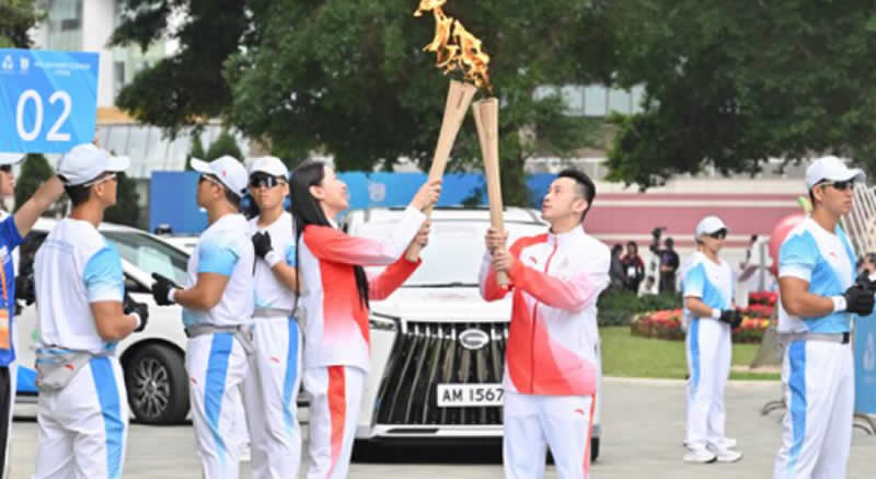 火炬传递启动仪式上午9时于深圳举行,香港、澳门和广州上午9时30分分别举行起跑仪式,同步开展火炬传递。