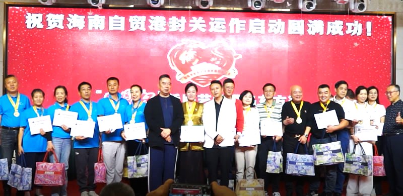 颁奖现场,在热烈的掌声中,获奖选手依次上台领奖,六人制冠军获得"中国杯"金奖杯及证书,亚军获得银奖杯及证书,季军获得铜奖杯及证书;四人制冠军同样获得金奖杯及证书,亚军获得银奖杯及证书,季军获得铜奖杯及证书。第4-16名获奖选手均获得"中国杯"获奖证书。值得一提的是,所有参赛选手均获得"中国杯"竞赛证书、自贸港封关启动金质纪念章、侨牌熊纪念章等精美伴手礼。