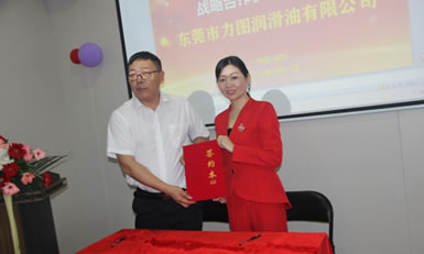 力图润滑油公司代表与企创网创始人林玉女士一起签约合影。