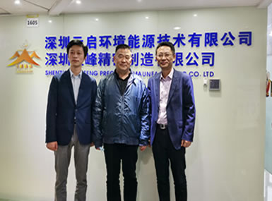 2020.04.11中华环保联合会大湾区副主任蔡晓武先生,国务院政策研究室内参主任常增寅先生及中国梦组委会秘书长刘清宇先生一行深入深圳元启环保能源技术有限公司及深圳至峰精密制造有限公司考察调研工作,元启公司董事长王新峰先生,至峰精密董事长伏冰峰先生参加调研。
