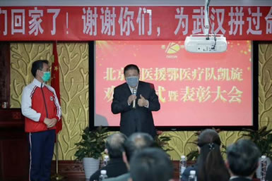 4月17日下午,援鄂医疗队结束隔离,由政府、民族党派、行业协会、国家健康第三方智库、企业家、新闻媒体等有关方面代表举行“北京瑶医医院援鄂医疗队凯旋欢迎仪式暨表彰大会。北京瑶医医院援鄂医疗队是在中国民族医药协会、中国非公医疗机构协会的组织下,在国家民委、国家中医药管理局、民建中央、北京市中医局、丰台区政府等部门的大力支持下,突破重重困难,创建应急机制,紧急出征,作为首都派出的首支民族医疗队、民营医疗队前往武汉驰援一线。此次援鄂出征,在一线共治愈新冠患者380余例,治疗疑似患者800多例,取得了重要成果和骄人的业绩。中华民族医学在抗疫取得成功,这是民族文化自信与传承的重要佐证。