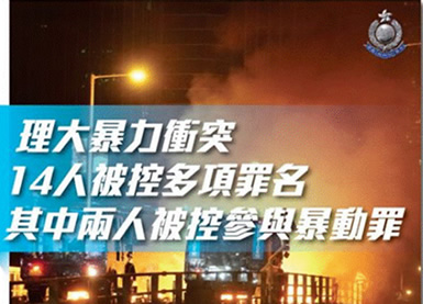 涉嫌参与香港理大暴力衝突,港警拘捕並起诉14人