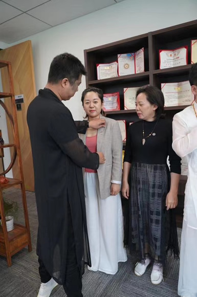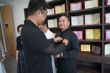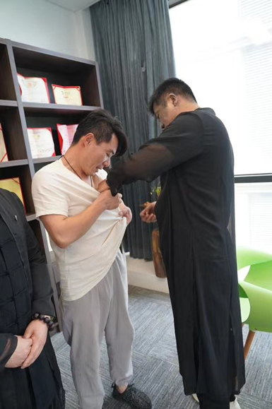 中宇网视(北京)影视文化传媒有限公司与上海圣魂文化传播有限公司达成深度战略合作,香港国际网络电视台执行总监刘跃龙先生,亲临全通金融谷集团,上海圣魂文化传播有限公司进行走访考察,并给予高度评价,同意上海圣魂设立香港国际网络电视台-上海栏目制作中心,于9日下午,青龙道长代表电视台执行董事局给制作中心的几位工作人员佩戴台徽。