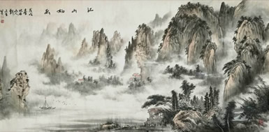 传统山水画作品要注意写客观的自然景色,更要表达作者的主观感受和内心感情。在造型活言上,以笔墨为手段,笔线的曲折有致与墨色的丰富变化所造就的情致与韵味是传统山水画形式语言矩力所在。我们都知道艺术属于意识形态,艺术不是对自然的简单复制,其中有作者本人的主观感受与艺术处理,比自然本身更集中概括。从这个意义上讲,越是好的中国画作品越应与自然拉开距离,造成强大的反差震撼观者的心灵。