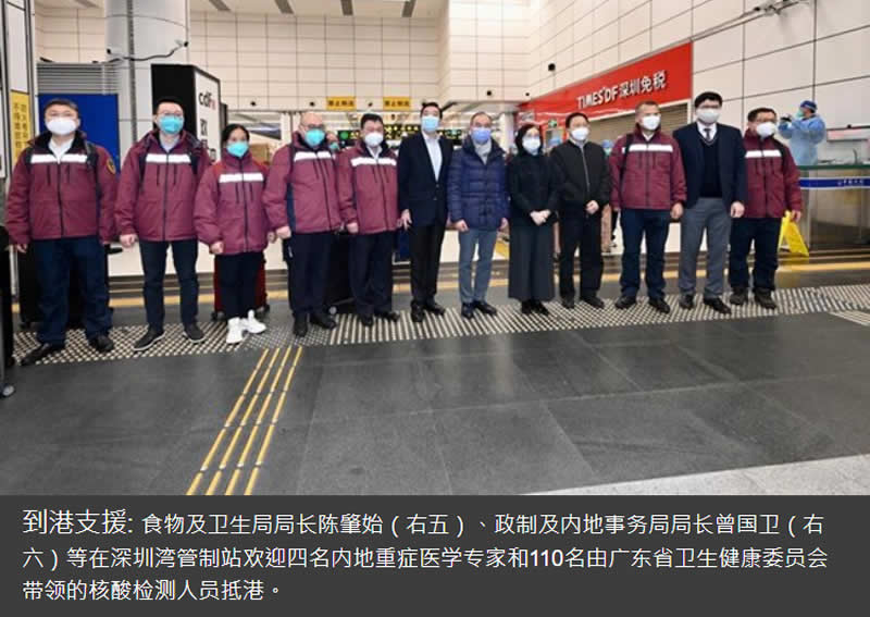 继早两日抵港的四位内地流行病学专家,以及多名检测技术人员连同两部流动检测车后,中央今日再派出四名内地重症医学专家和110名核酸检测人员来港参与抗疫工作。