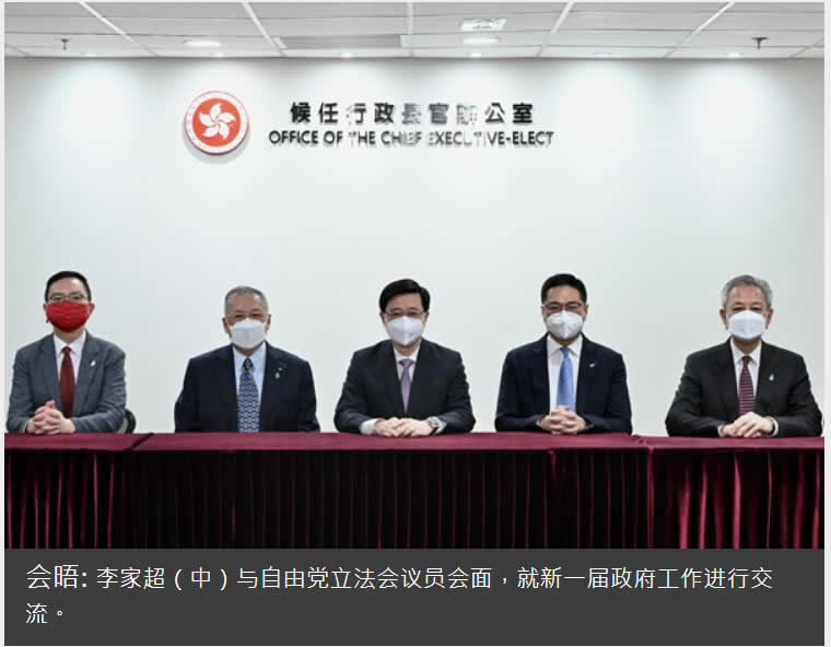 候任行政长官李家超今日与自由党立法会议员会面,之后与部分立法会议员会晤,就新一届政府工作进行交流。两场会面中,双方就香港经济、竞争力、通关、房屋土地等议题交换意见。