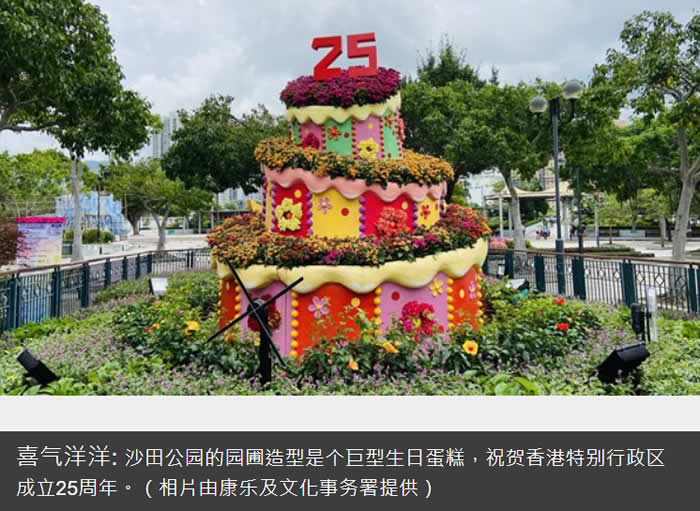 为庆祝香港特别行政区成立25周年,康乐及文化事务署6月推出花悦满城计划,分阶段在全港各区多达51个主要公园和地点进行园景美化工程,包括设置花海、花墙、主题园圃等,让市民在花团锦簇之中感受庆回归的欢乐气氛。
