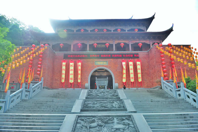 8、鳌头:原指皇宫大殿前石阶上刻的鳌的头,考上状元的人可以踏上。后来用“独占鳌头”比喻占首位或取得第一名,懿明楼居中,沿石阶拾级而上仰望妈祖殿