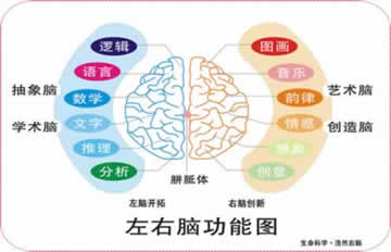 大脑两半球在机能上有分工,左半球感受并控制右边的身体,右半球感受并控制左边的身体,左右脑相互协调配合构成统一体。在阴阳学说中,左脑属阴(坤),右脑属阳(乾);在工作生活中,左脑主管逻辑思维(完成任务),右脑主管形象思维(创造创新)。而左右脑发展失衡是大脑细胞病变的主要诱因之一。