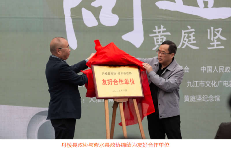 启动仪式上,黄庭坚纪念馆向丹棱县政协、大雅堂博物馆赠送了黄庭坚书法拓片;丹棱县政协主席与修水县政协主席为缔结友好合作单位揭牌;黄庭坚纪念馆馆长与大雅堂博物馆馆长为缔结友好博物馆揭牌。