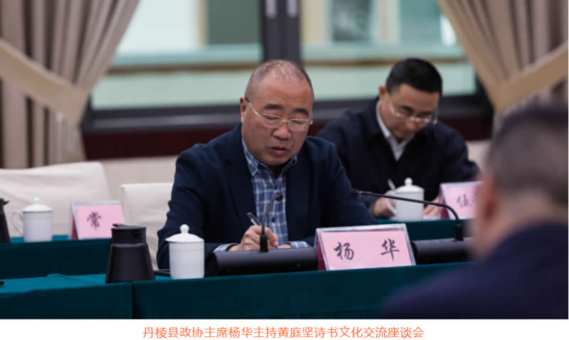 丹棱县政协主席杨华在座谈会上讲到:本次活动是为贯彻落实县委《关于深入贯彻习近平总书记来川视察重要指示精神传承三苏文脉发展大雅文化的决定》,从中华优秀传统文化中寻找源头活水,通过与修水县政协、黄庭坚纪念馆等充分对接而举办的跨省际优秀传统文化交流活动,必将有力的促进两地政协文化文史工作,必将有力的开启大雅堂黄庭坚诗书文化的研究和传承弘扬。