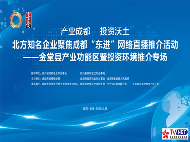 香港网视成都分台专讯 2月28日,成都市投资促进局、成都市人民政府驻北京办事处和成都市金堂县人民政府在北京、金堂两地联合举办“产业成都·投资沃土”北方知名企业聚焦成都“东进”网络直播推介活动——金堂县产业功能区暨投资环境推介。