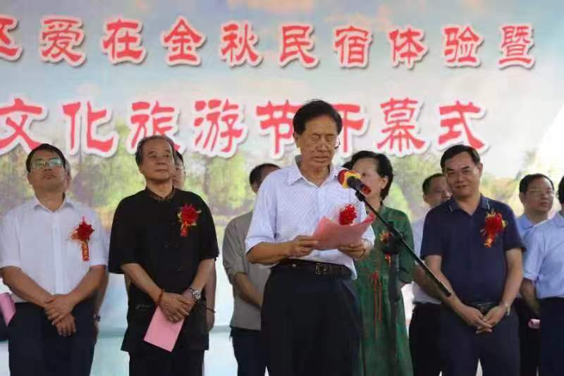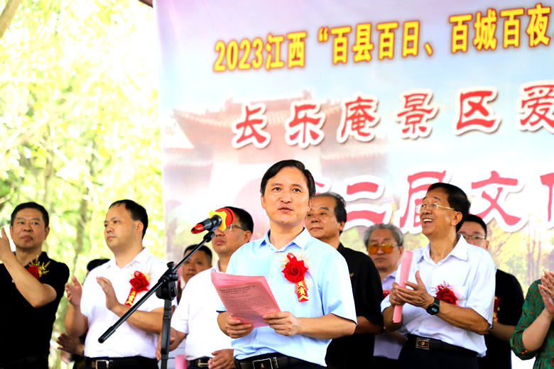 新干县人民政府副县长杨海涛致欢迎辞并宣布长乐庵景区爱在金秋民宿体验暨第二届文化旅游节开幕。