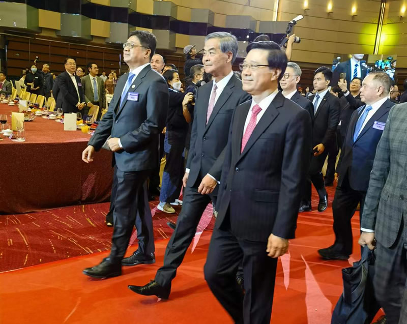 香港乔界社团联会第八届会董就职典礼,行政长官李家超发表讲话。香港国际网络电视台董事长刘俊明先生、董事执行副主席王锦彪先生,应邀参加。