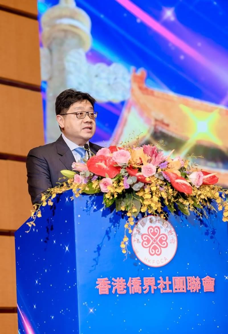 程学源表示,中国侨联是党和政府联系归侨侨眷和海外侨胞的桥梁纽带。今年8月,第十一次全国归侨侨眷代表大会在北京人民大会堂隆重召开,习近平等党和国家领导人到会祝贺,李希同志代表党中央致词。站在新的历史起点上,中国侨联将全面贯彻落实十一代会精神,继续支持香港侨界社团联会工作,支持香港侨界在推动香港高质量发展中发挥积极作用。程学源向香港侨界提出了四点希望:一是希望香港侨界同胞一如既往的坚决拥护"一国两制"方针,落实"爱国者治港原则",支持特区政府依法施政,为香港高质量发展不懈努力;二是希望香港侨界同胞深刻认识国家和世界发展大势,将个人发展融入到国家和民族事业中,积极融入国家发展大局,推进中国式现代化,参与"一带一路"和粤港澳大湾区建设,为实现民族复兴贡献侨界力量。三是希望香港侨界同胞发挥融通中外的优势,面向世界讲好中国故事、香港"一国两制"的故事和新时代香港故事。建设和谐侨社,促进社会和谐稳定,为营造包容和谐的社会氛围作出新贡献。四是希望香港的侨界青年增强民族自豪感和主人翁意识,厚植家国情怀,锤炼过硬本领,抓住新时代新的发展机遇自强不息、善拼敢赢。
